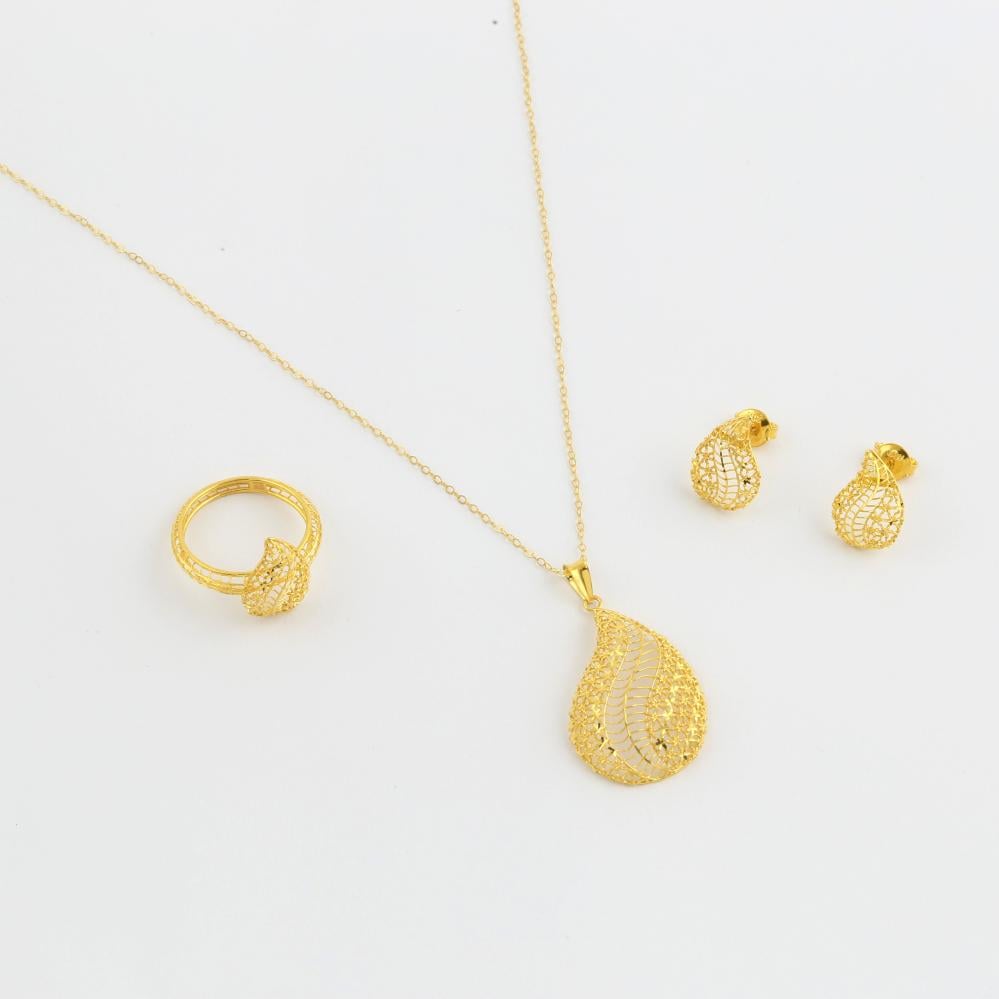 نصف طقم ذهب الدمعة منقوش - عيار 21