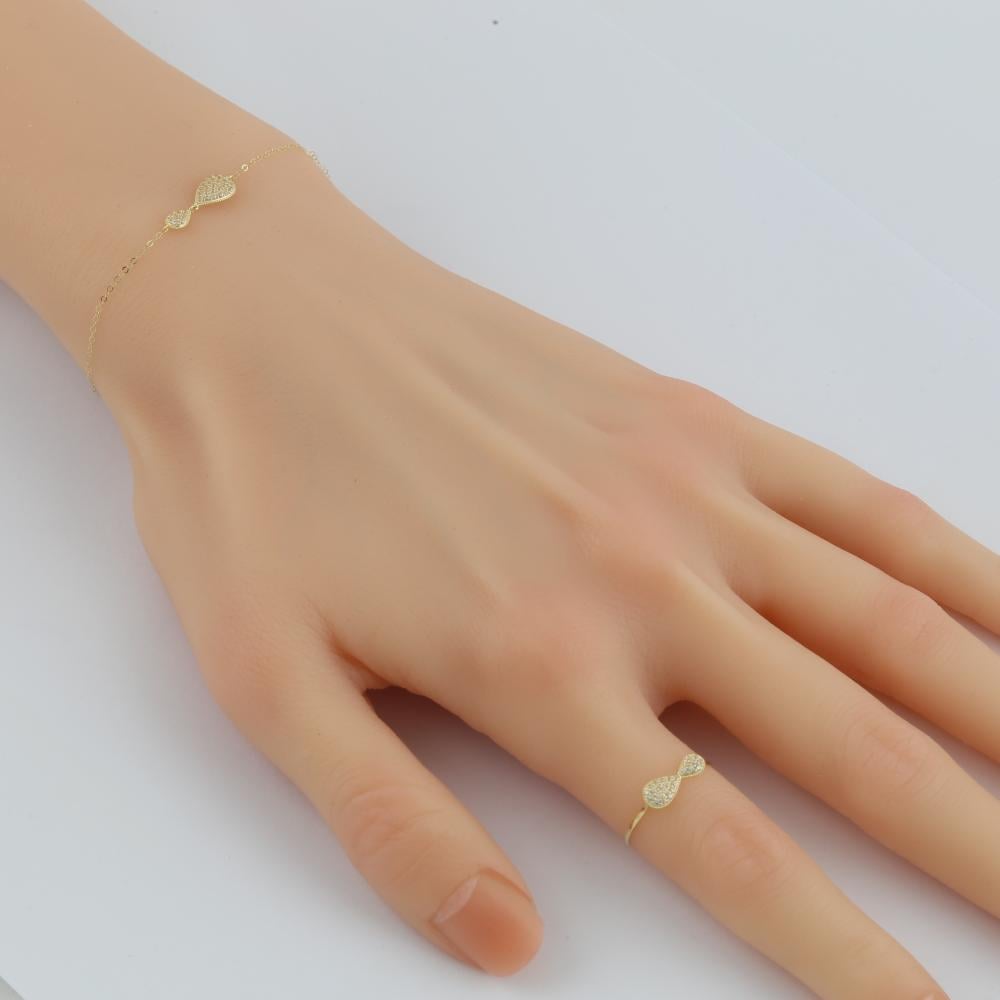 من "طُرف"، نقدم لكِ هذه المجموعة الذهبية العصرية التي تتميز بتصميم رقيق وأنيق مستوحى من شكل الدمعة. تتألف المجموعة من "أربع قطع أنيقة" قلادة بأطوال مختلفة بتعليقات على شكل دمعة انسيابية مرصعة بالزركون الأبيض اللامع، سوار أنيق بتعليقة دمعة متطابقة، خاتم عصري بتصميم مفتوح مزين بتعليقة دمعة متلألئة، وأقراط رقيقة بتصميم دمعة صغيرة مرصعة بالزركون. جميع القطع مصنوعة من الذهب المصقول ومرصعة بدقة بحبات الزركون البراقة لتضفي لمسة من الفخامة والتألق على إطلالتك.